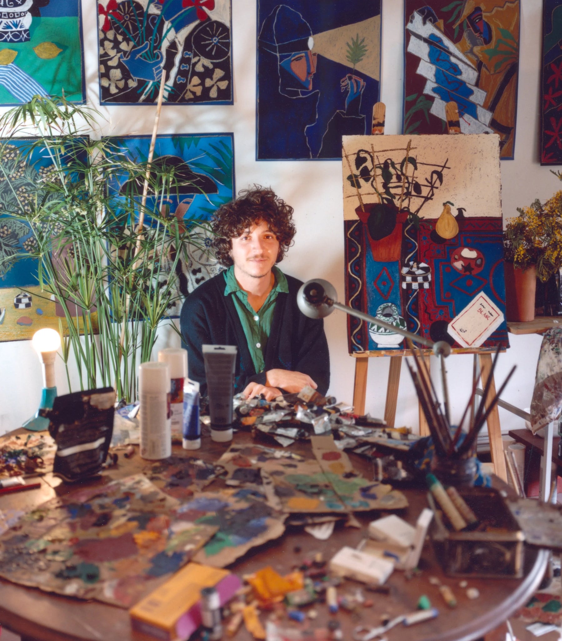 Driven by a quest for purity and contemplation, his work takes shape through still life and portraits, where familiar figures rub shoulders with imaginary beings, often imbued with traditional customs and historical references. This was followed by a residency at the Château of Tarascon and a first personal exhibition at Double V - Marseille in 2021. The artist continues his path with a residency at the Riad Secret Garden in Marrakech, as well as a group exhibition by The Tesoro, in Amsterdam.