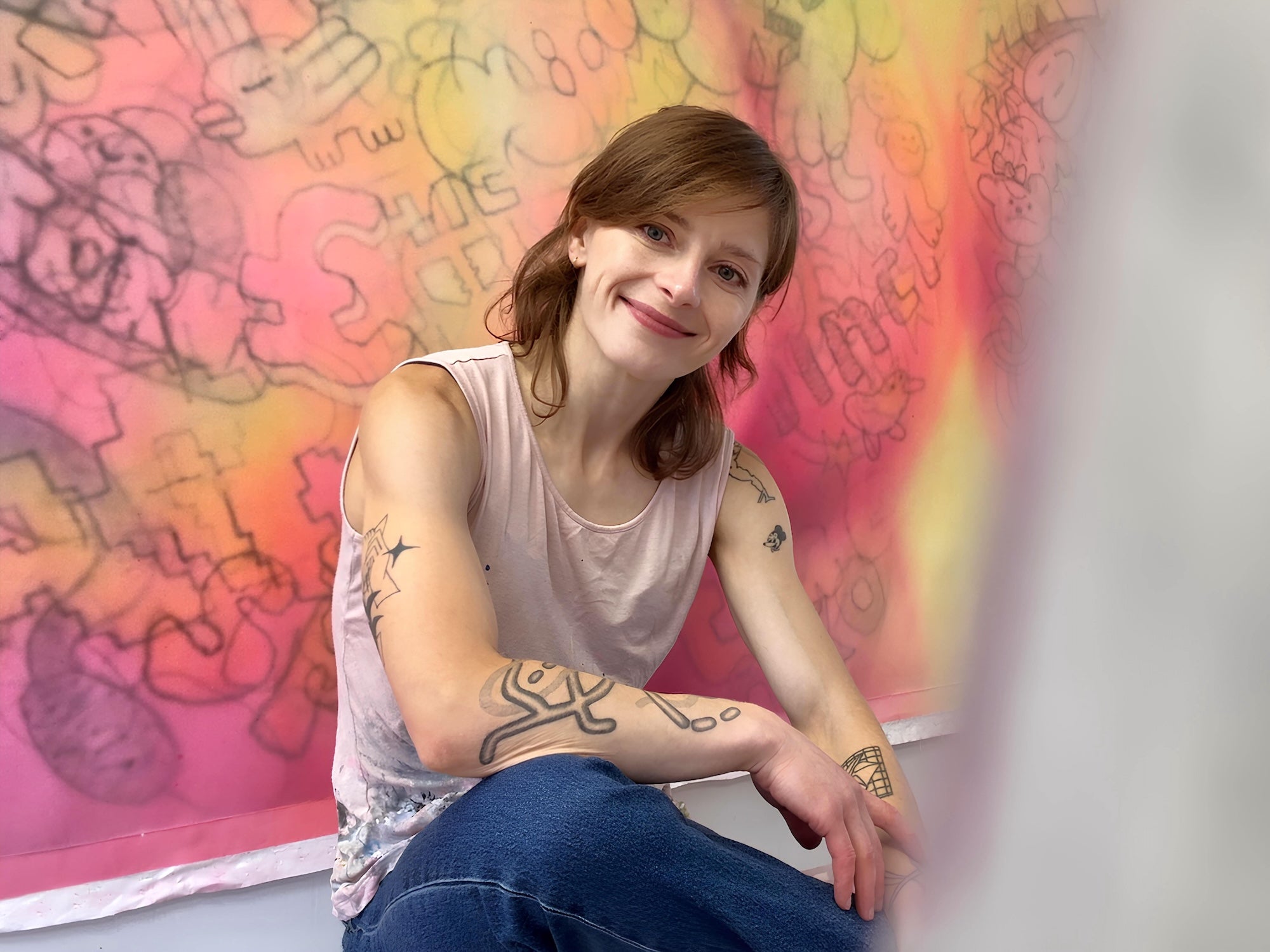HELLO MAGDA, THANK YOU FOR PAINTING WITH US! TO START, CAN YOU TELL US ABOUT THE ORIGINS OF YOUR ART PRACTICE AND THE DEVELOPMENT OF LAYERING OF TATTOO-LIKE IMAGERY?